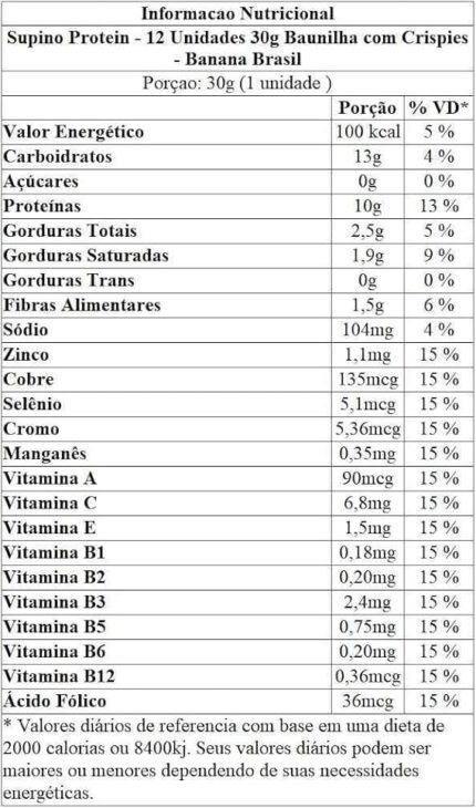 Banana Brasil Display Barra De Proteína Supino Protein Baunilha Com Crispies – 12 Unidades De 30G