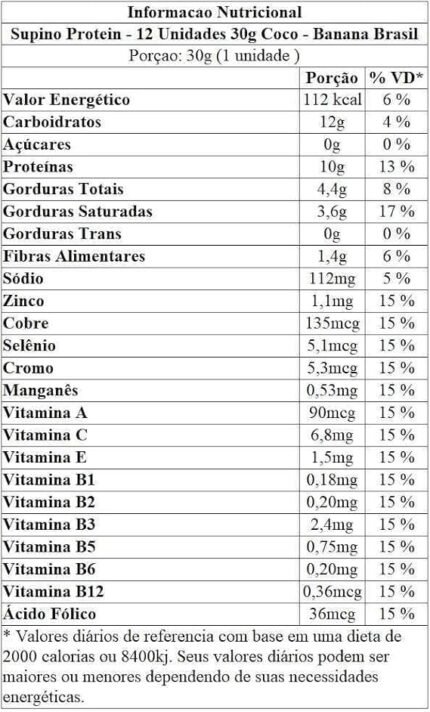 Banana Brasil Display Barra De Proteína Supino Protein Chocolate – 12 Unidades De 30G Ingredientes   Banana Brasil Display Barra