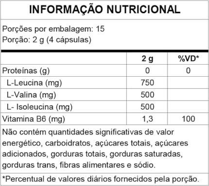 | Porção recomendada | Sugestão de uso: Adicione 1 dosador (5g) de BCAA 10:1:1 em 100 ml de água. |