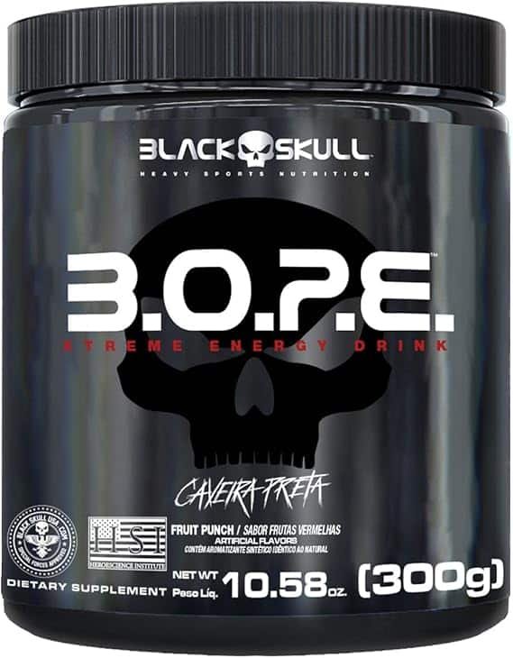 Bope pré treino (300g) – black skull…… O pré treino b.o.p.e .faz parte da linha caveira preta series da black skull usa e possui em sua fórmula ingredientes como a creatina, que tem como função aumentar a força e o desenvolvimento muscular; taurina a qual atua no organismo gerando mais energia; arginina que melhora a vasodilatação e a cafeína, que além de ser um ótimo estimulante, gera mais energia, foco e concentração durante o treino…….. A.cafeína.auxilia no aumento do.estado de alerta e na melhora da concentração e no aumento da.capacidade de resistência e no.desempenho de exercícios físicos de resistência..já a.creatina.auxilia no.aumento do desempenho físico.durante exercícios repetidos de.curta duração e alta intensidade.