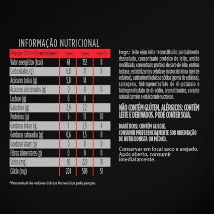 | Características especiais | Alto Valor Proteico, Baixo teor de carboidratos, Sem açúcares adicionados, Sem glúten, Lácteos e Colesterol, Vegano |