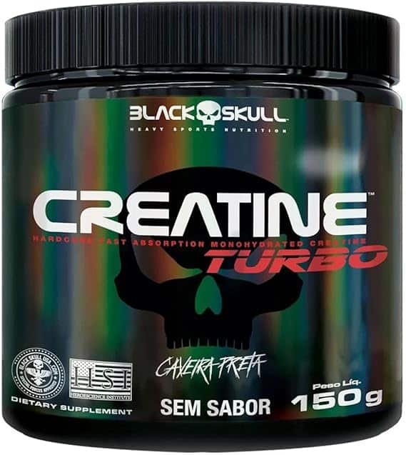 Creatine Turbo BlackSkull – Creatina Monohidratada em pó, com carboidrato para melhor absorção e performance (150g Pote, Sem sabor)