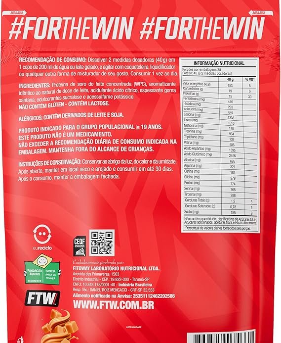 - Qualidade e confiança FTW – Produto sem glúten, com lactose natural do soro do leite, e dispensado de registro conforme RDC nº 240/2018 da Anvisa.