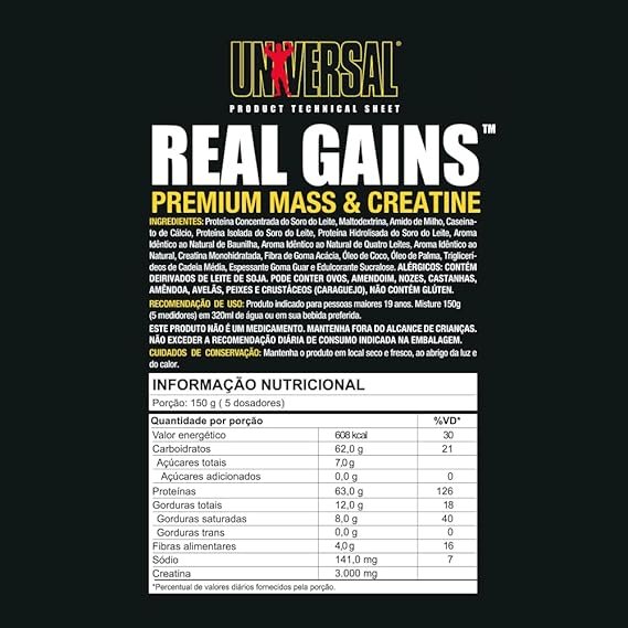 Hipercalórico Real Gains – Universal Nutrition (5Kg, Baunilha)