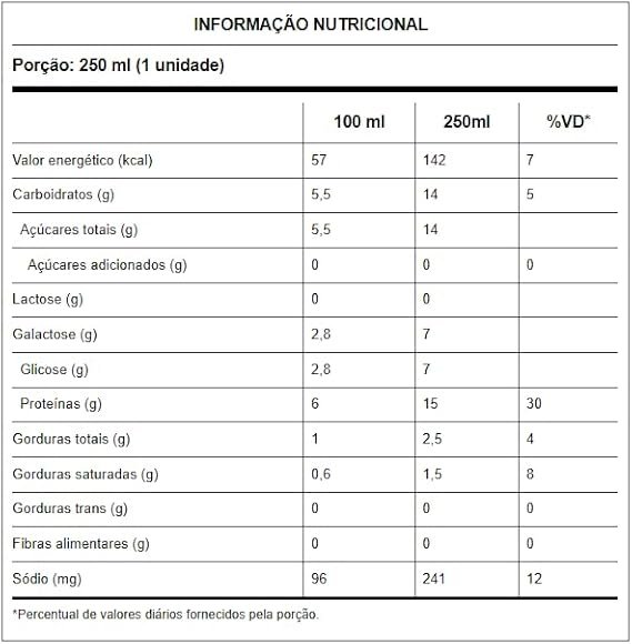 | Aditivos | Proteína do soro do leite, Zero Açúcar, Zero Lactose |