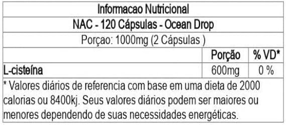 Suplemento Alimentar em Capsulas NAC de N-Acetil L-Cisteina 120 Capsulas de 500mg Ocean Drop