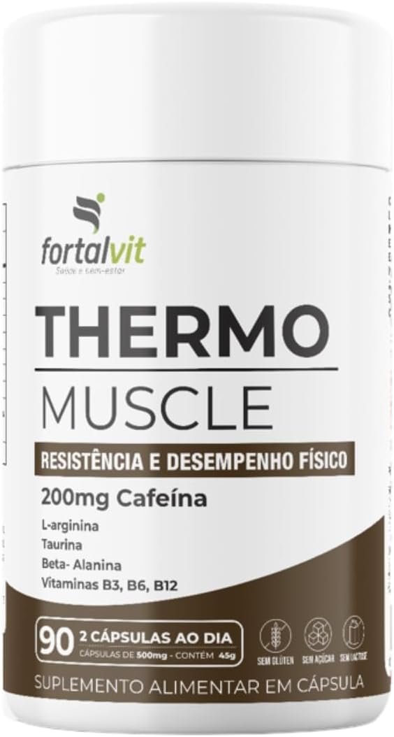 Thermo Muscle Pré-Treino, 90 Cápsulas, 200mg Cafeína, L-Arginina, Taurina, Beta-Alanina e Vitaminas do Complexo B, Fortalvit