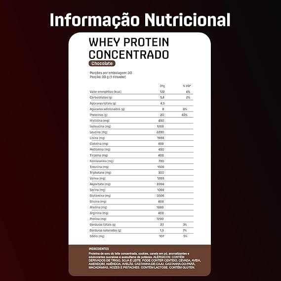 | Nome do produto | WHEY PROTEIN CONCENTRADO CHOCOLATE – POUCH 1800 g |