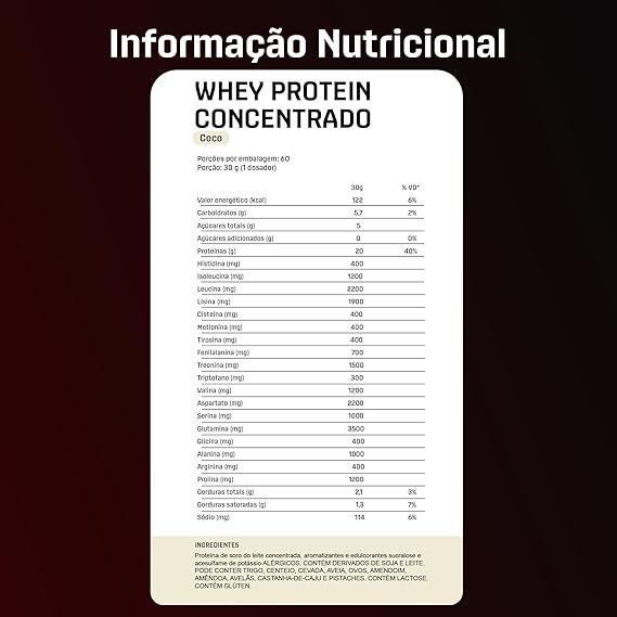 | Nome do produto | WHEY PROTEIN CONCENTRADO COCO – POUCH 1800 g |